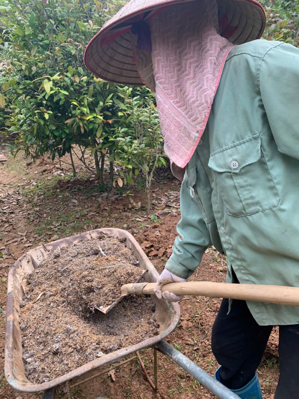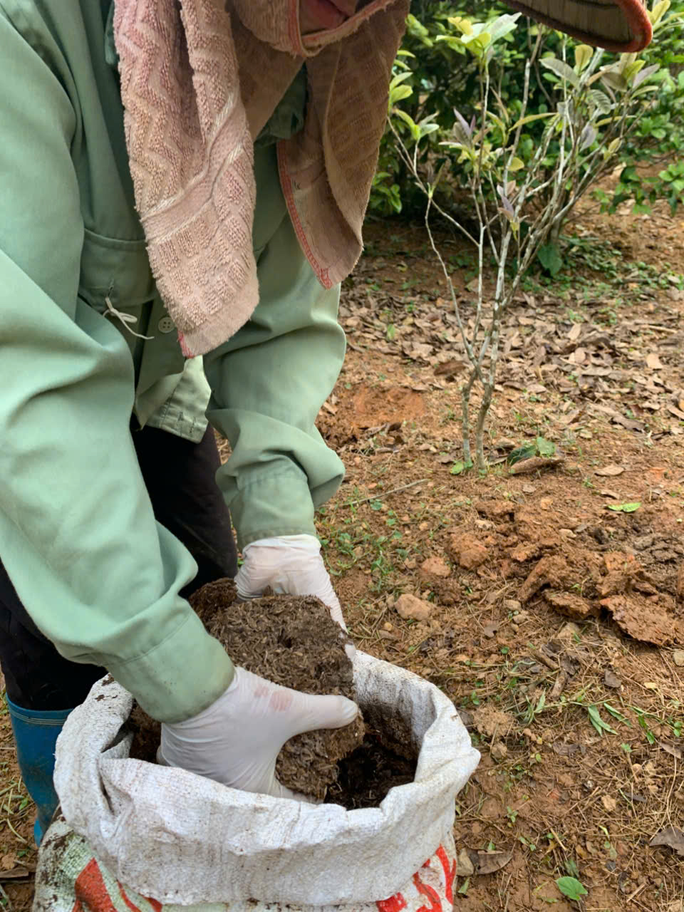 | 102 | Thao tác kỹ thuật - Tiến tục tiến hành bón phân, xới xáo vun gốc và lấp phân cho một số khu vực cây Trà Hoa Vàng nhằm đảm bảo giảm thiểu thất thoát lượng phân bón do cỏ dại và thời tiết. |