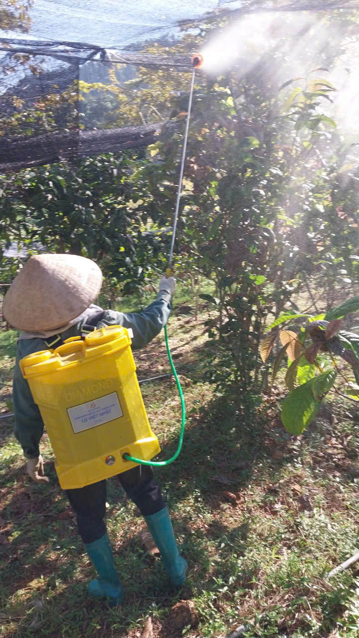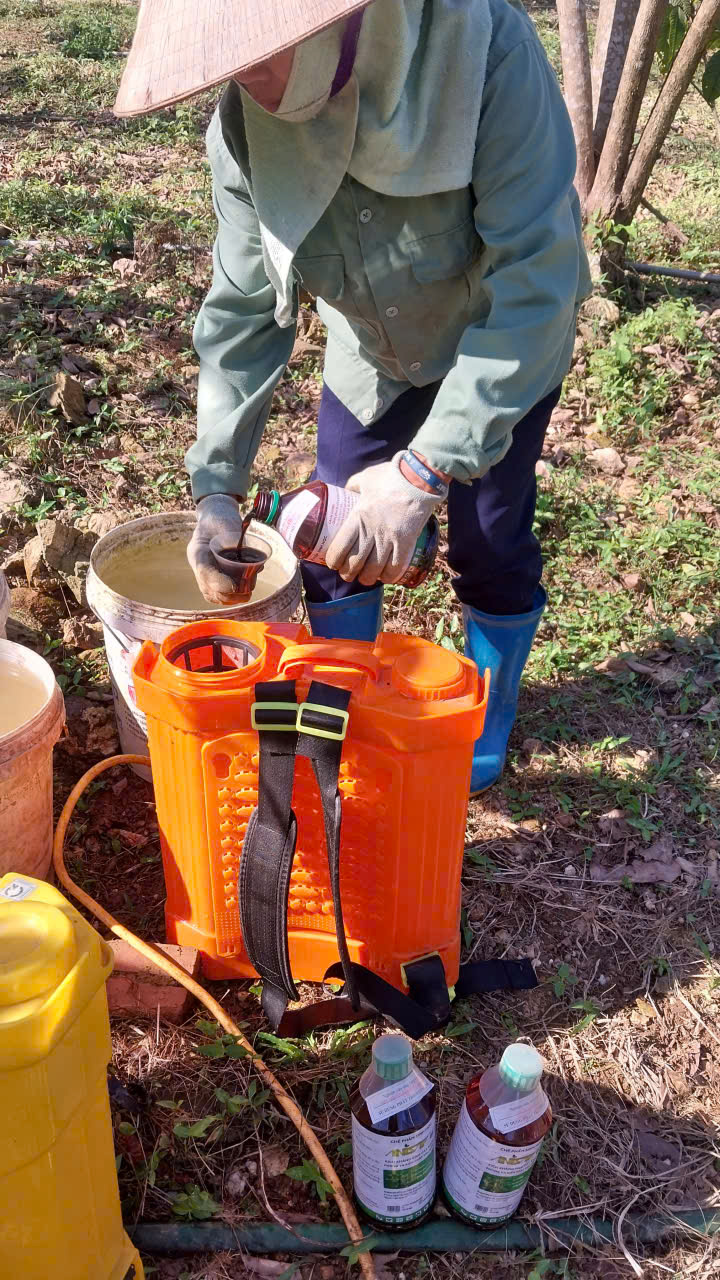 | 108 | Bảo vệ thực vật - Tiến hành phun chế phẩm sinh học trừ sâu thảo mộc kết hợp Anisaf 01, 02 và 03 cho cây trà. Cách dùng: pha tỉ lệ 230ml mỗi loại chế phẩm 01, 02 vào chung một bình phun 20l, do mùa hanh khô, cần phun tăng lượng thuốc 01 và 02 để phòng trị. Tiến hành pha và phun cho toàn bộ khu vực. Tổng 13 bình phun. . |