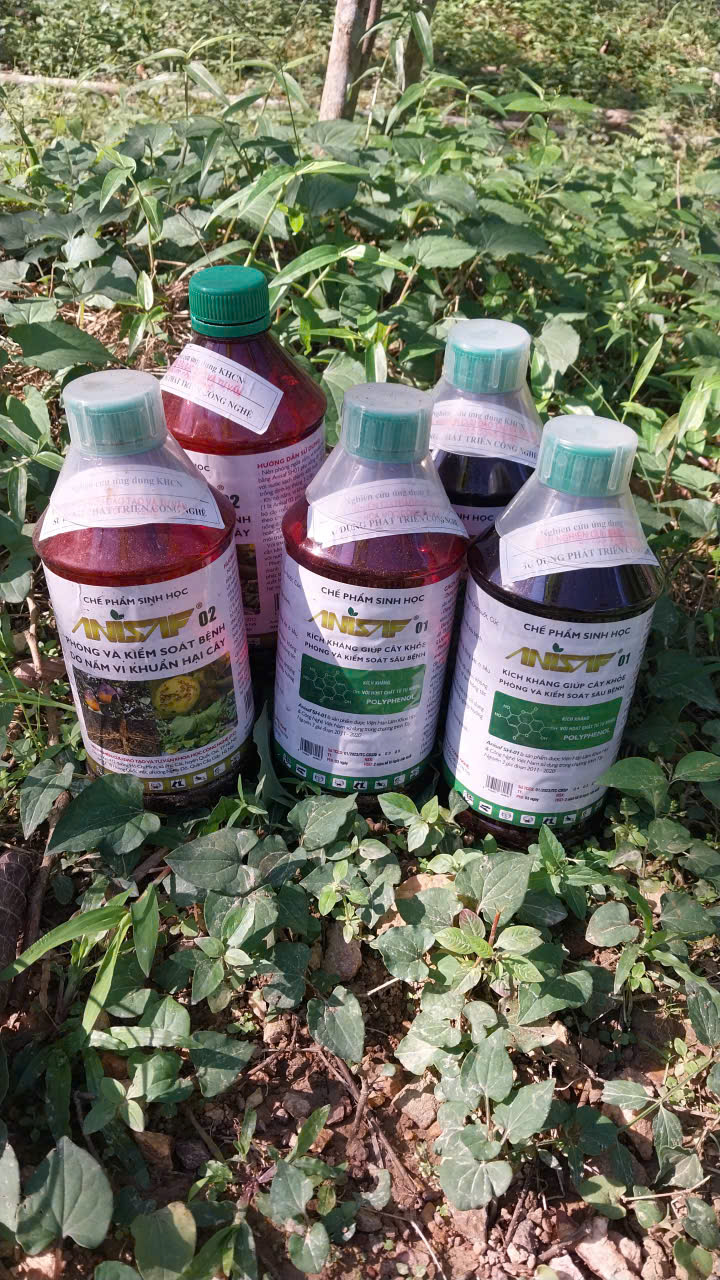 | 46 | Bảo vệ thực vật - Sau thời gian mưa ẩm kéo dài, tiến hành phun chế phẩm sinh học Anisaf 01, 02 và 03 để phòng trừ các loại sâu hại, các bệnh về nấm và virus cho toàn bộ khu vực trồng và khu vực xung quanh vườn. Cách dùng: pha tỉ lệ 200ml mỗi loại chế phẩm /20 lít nước phun cho toàn bộ vườn |