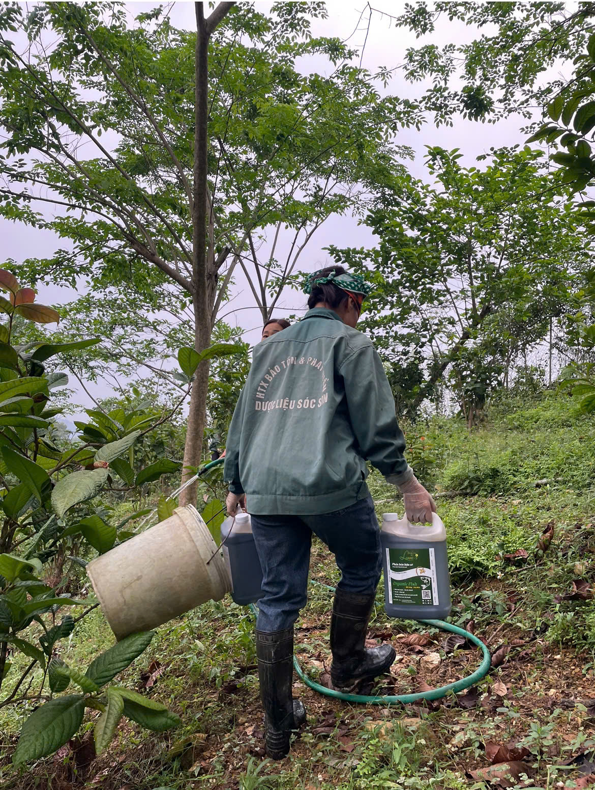 | 09-09-2025 12:09:00 | Bón Thúc | Tiến hành bón phân cho 1 số khu vực đã thu hoạch lá cho cây Trà Hoa Vàng. Sử dụng phân hữu cơ LUCAVI dạng dung dịch - Lượng bón: • Cây nhỏ: tưới 100ml dung dịch phân bón • Cây nhỡ: tưới 150ml dung dịch phân bón - Cách bón: Tưới gốc dung dịch phân bón đậm đặc, sau đó tưới nước để phân ngấm dần vào đất. Tổng dung lượng bón là 100 lít (20 can 5lit) dung dịch Lucavi. | Hoàn thành | |
