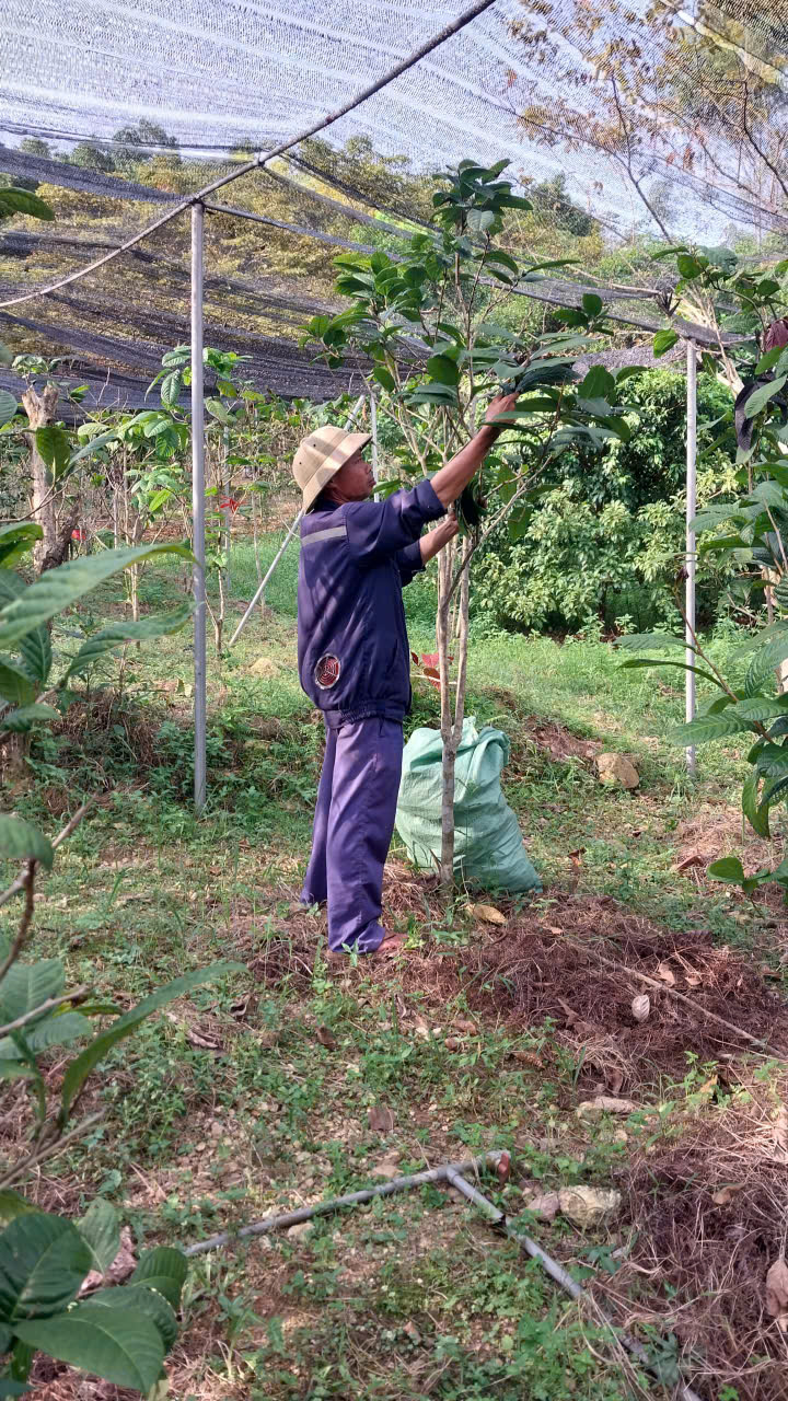 24-06-2024 12:06:00 Thao tác kỹ thuật Thu gom các cành của cây che tán bị gãy, đổ trong vườn do mưa, giông gió, ... và mang ra khỏi vùng trồng. Hoàn thành