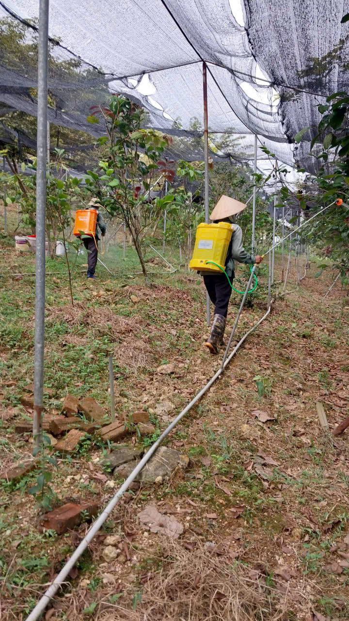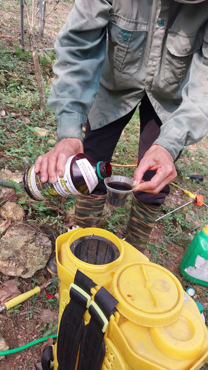 10-12-2024 12:12:00 Bảo vệ thực vật Tiến hành phun chế phẩm sinh học Anisaf 01, 02 và 03 để phòng trừ các loại sâu hại, các bệnh về nấm và virus gây ra cho cây. Cách dùng: pha tỉ lệ 200ml mỗi loại chế phẩm /20 lít nước phun cho toàn bộ vườn Hoàn thành