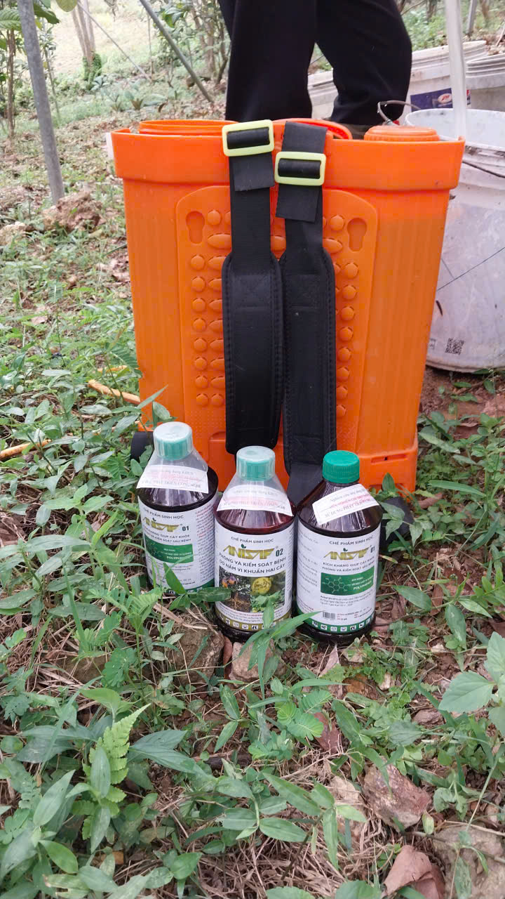 12-06-2024 12:06:00 Bảo vệ thực vật Tiến hành phun chế phẩm sinh học Anisaf 01, 02 và 03 để phòng trừ các loại sâu hại, các bệnh về nấm và virus gây ra cho cây. Cách dùng: pha tỉ lệ 200ml mỗi loại chế phẩm /20 lít nước phun cho toàn bộ vườn Hoàn thành