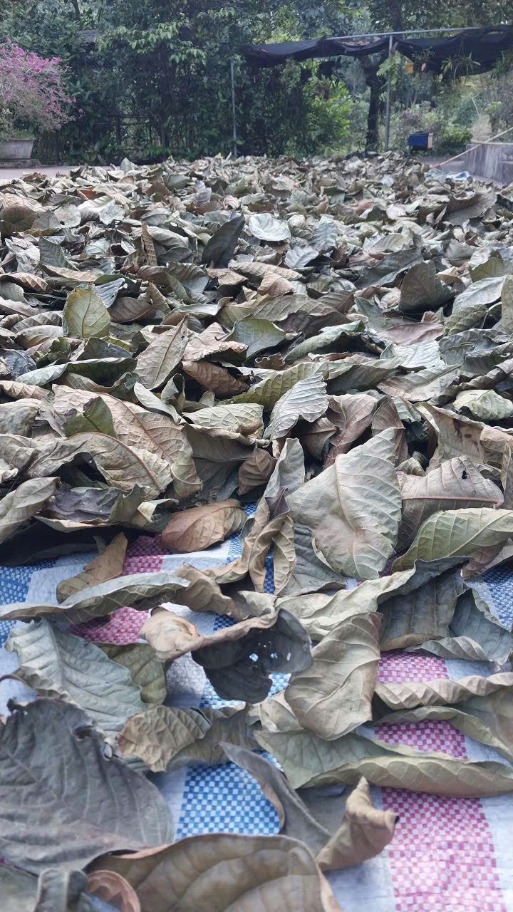 11-09-2025 12:09:00 Phơi sấy thủ công Lá trà sau khi hái được phơi sấy thủ công trên 1 lớp bạt dứa và cách ly với khu chăn nuôi. Tổng khối lượng thu hoạch 5/9 sau khi phơi khô được 19kg lá trà khô. Hoàn thành