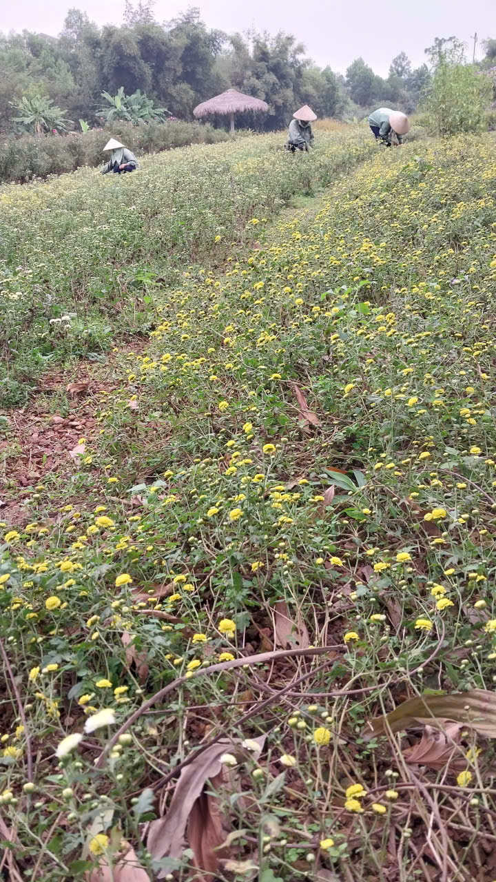 | 06-12-2025 12:12:00 | Thu hoạch | Tiếp tục chọn thời điểm khô ráo để thu hoạch hoa cúc. Tổng khối lượng lần thu thứ 2 được 9kg hoa tươi. Sau khi sấy thu được 1.2kg hoa khô. | Hoàn thành | |
