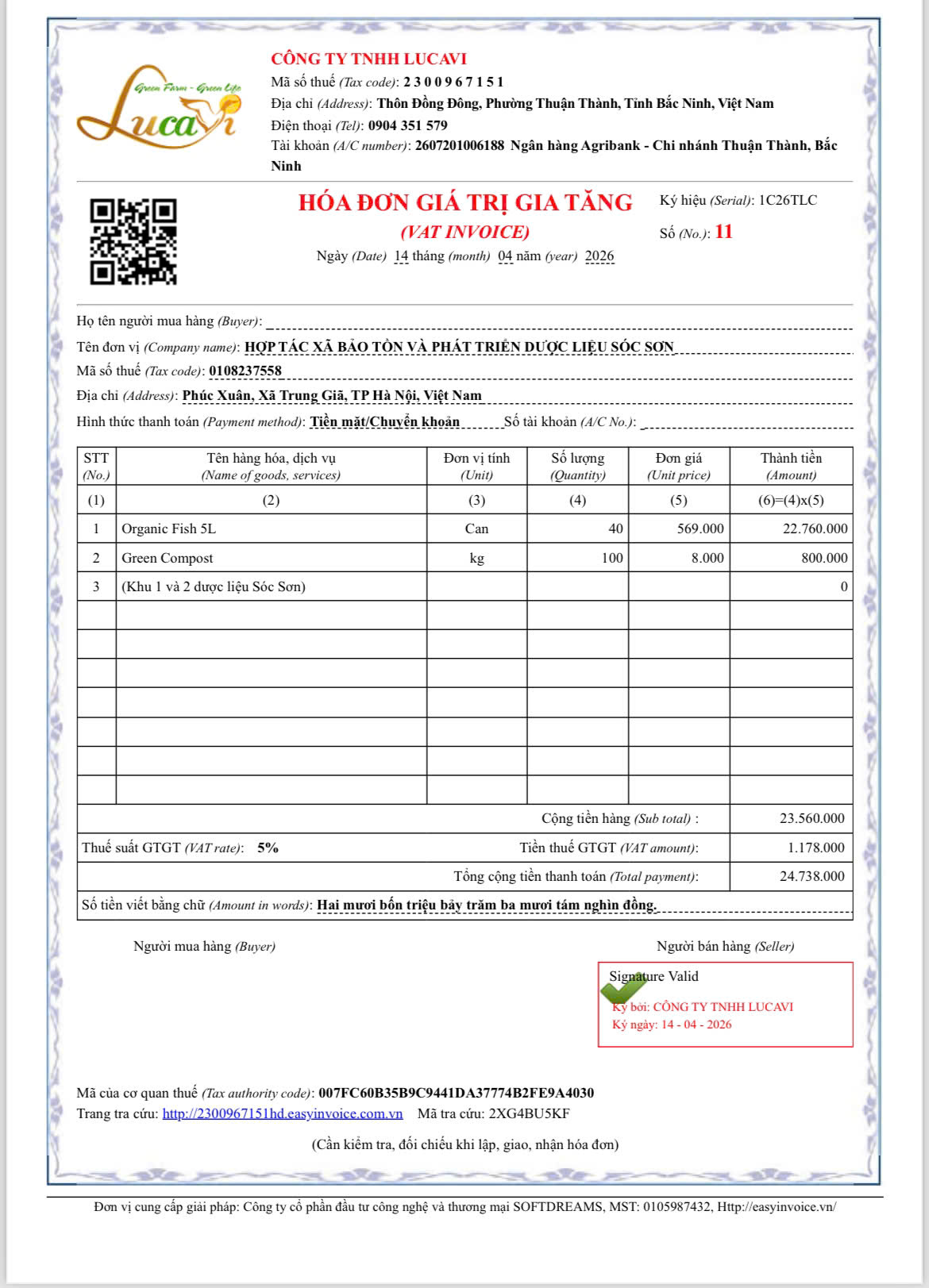 | 14-04-2026 12:04:00 | Vật tư kỹ thuật | Nhận từ khu 1: 2 bao Green Compost và 20 Lít Lucavi Organic Fist. | Hoàn thành |